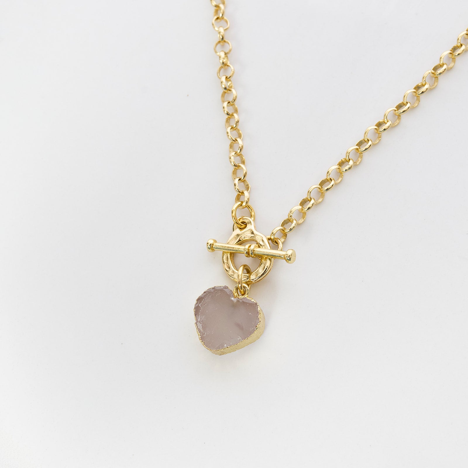 Este collar Corazón Cuarzo de color transparente que te hará lucir especial y además te brinda las bondades de esta piedra que repela las malas energías y atrae las buenas vibraciones.